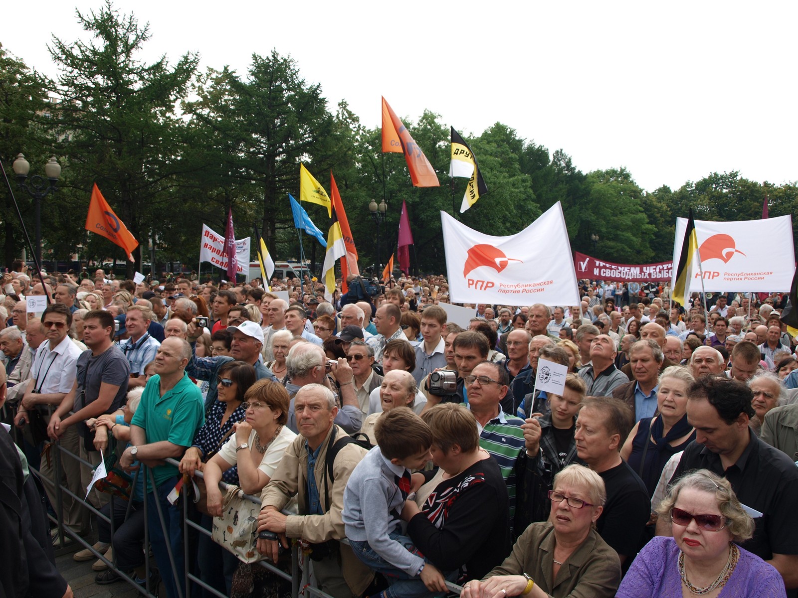 Имперские флаги, знамёна Либертарианской партии, безликие растяжки ПАРНАСа, плакаты РПР — и едва заметный среди толпы флаг «Солидарности», а больше никаких флагов и нет. Интересный расклад. Хотя всем, кто пришёл и привёл своих сторонников, стоит сказать спасибо. А флаги… без них людей лучше видно.